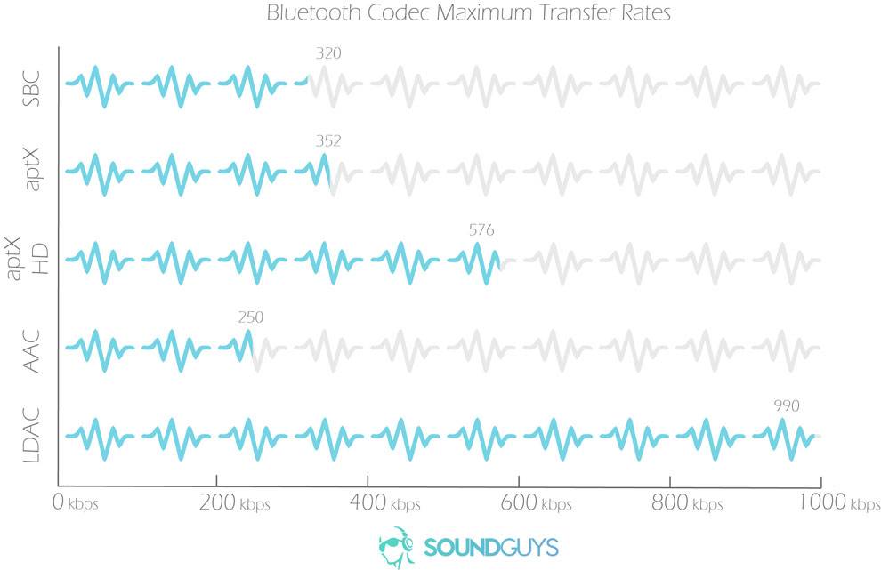 Существует 5 основных Bluetooth аудио-кодеков: SBC, AAC, aptX, aptX HD и LDAC.