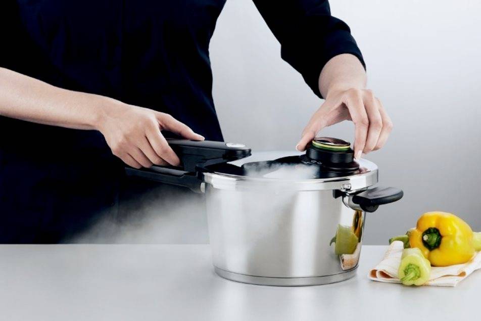 Ознакомившись с инструкцией, в процессе приготовления Вы сможете управлять клапаном, который расположен на крышке скороварки, и регулировать в ней давление, выпуская пар.