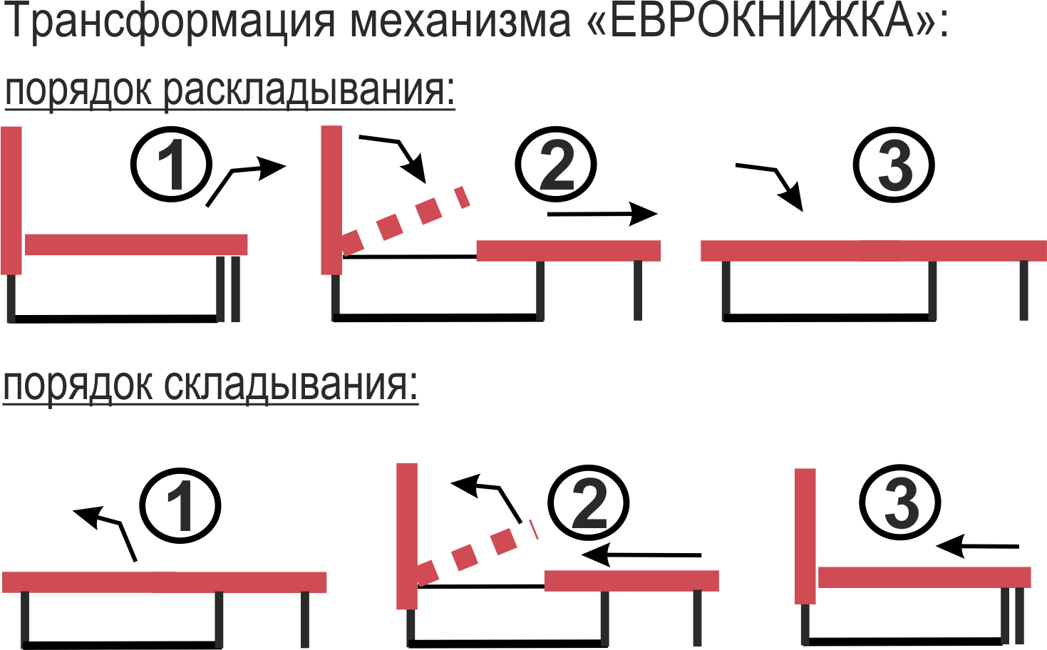 Схема механизма трансформации дивана по типу «Еврокнижка»