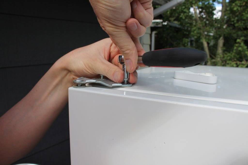 Пока краска сохнет, открутите родные ручки вашего холодильника.