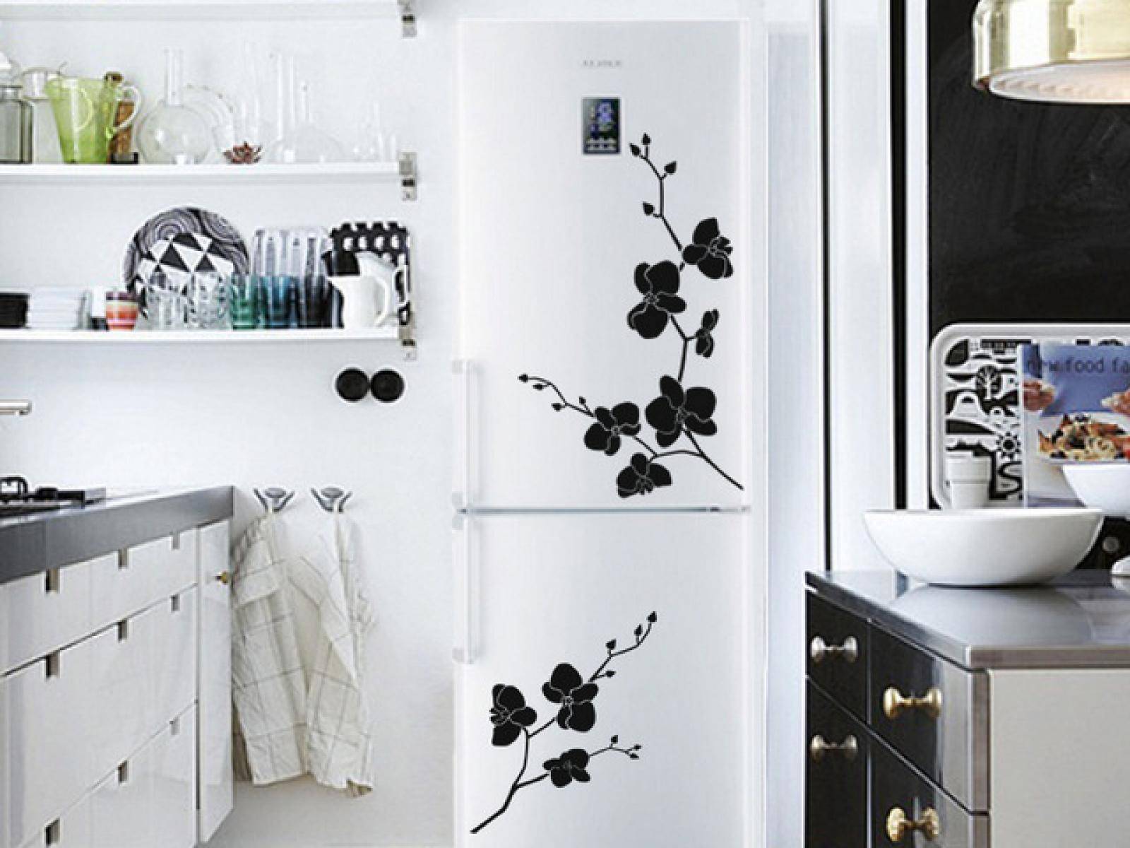 Вариантов применить виниловые наклейки множество. Можно украсить поверхность холодильника, расположив в определенных местах наклейки небольшого размера. Это удобно в тех случаях, когда на эмалевом покрытии появились царапины и пятна, но в целом холодильник выглядит вполне прилично.