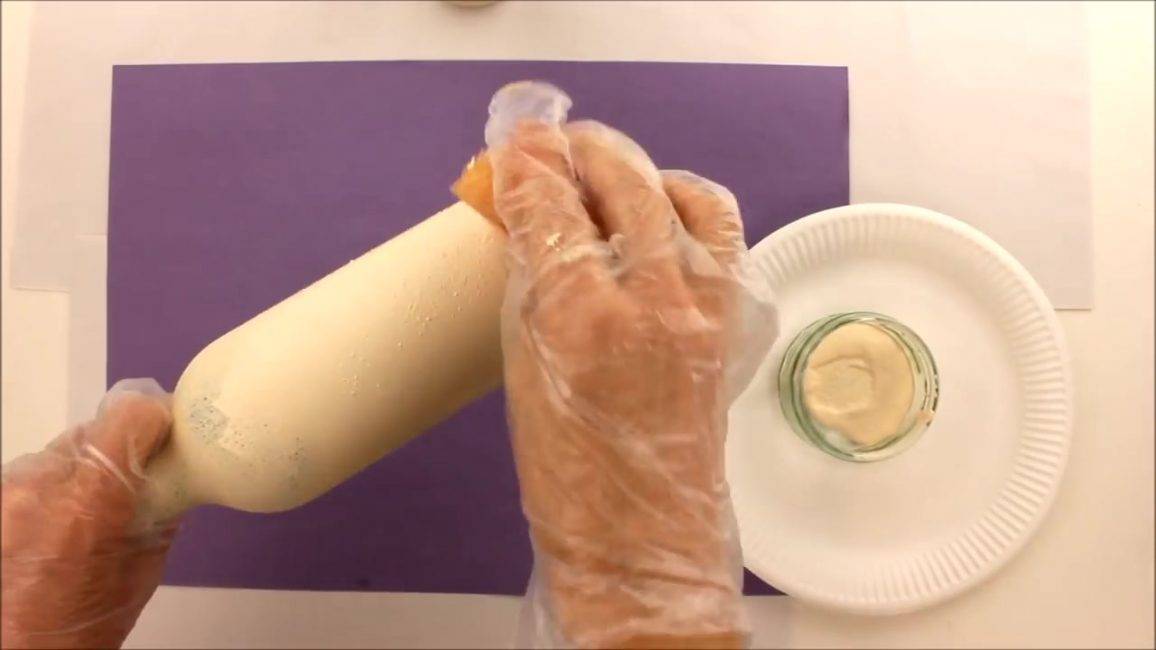 Подготовительный процесс бутылки. Любую бутылку следует сначала очистить от всех наклеек и клеевых остатков. Для этого емкость нужно замочить в мыльном растворе, а затем удалить все фрагменты. Далее обезжиривателем удаляются жировые отложения.
