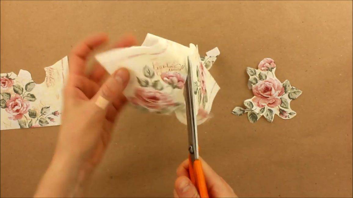 - Вырежьте из салфеток нужные изображения. Отделите от них верхний слой