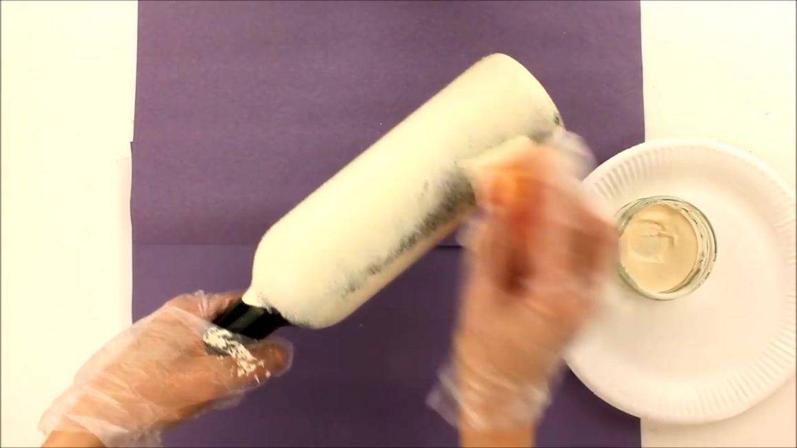 Так как нужно выделить трещинки, следует покрыть губкой поверхность бутылки лаком коричневого оттенка. Лучше заранее смешать несколько оттенков, чтобы получить желаемый