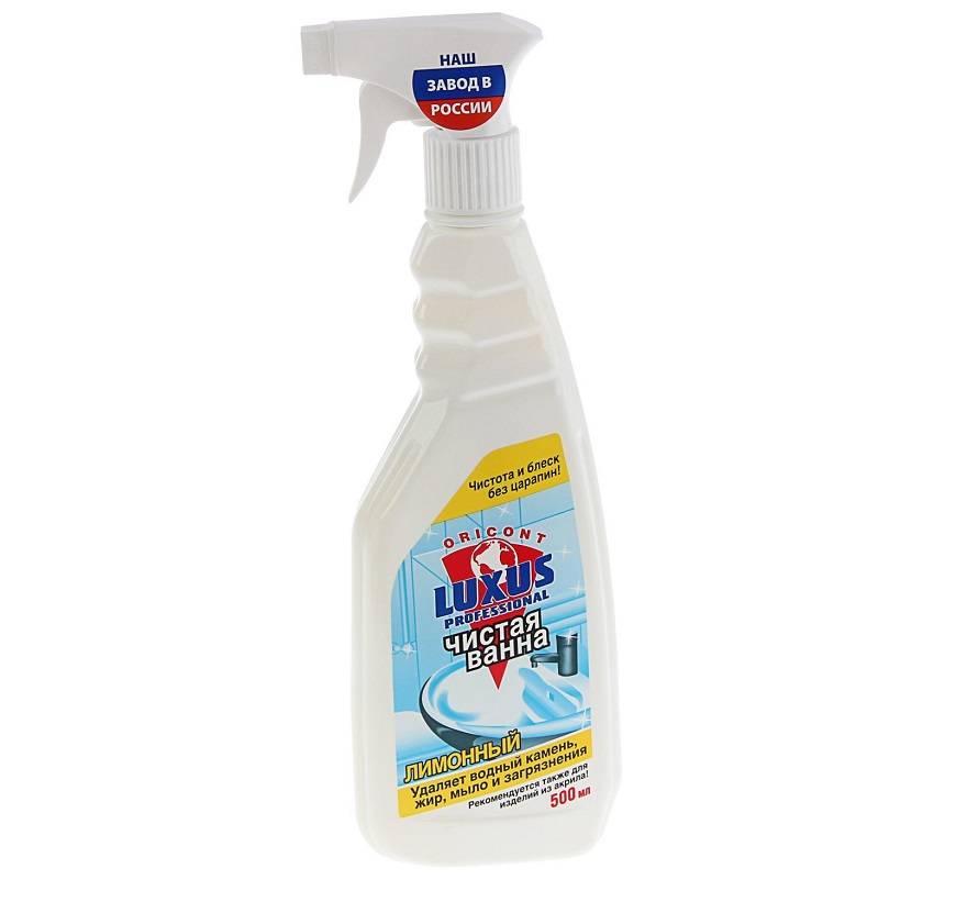 Лучшая пена для быстрой очистки ванны из акрила производится в Италии. С ее помощью легко ухаживать также за кафелем, зеркалами, смесителями, изделиями из пластмассы. Активным веществам и лимонной кислоте поддаются застаревшие загрязнения, ржавчина, известь, жир, мыльные потеки. Прежде, чем мыть акриловую ванну, встряхните баллон. Затем переверните распылителем книзу, нанесите пену равномерным слоем. Оставьте на 10 минут, при сильных загрязнениях — на 20 минут. Смойте водой. Упаковка объемом 600 мл стоит около 350 рублей.