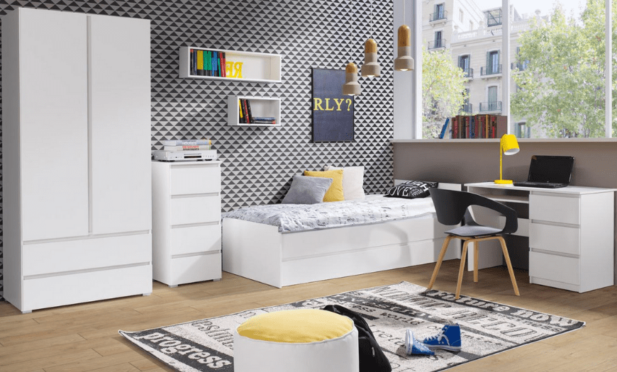 Мебель делают в основном из МДФ и ДСП, которые выделяют формальдегид и иные плохие компоненты, способные пошатнуть здоровье ребенка. Но сейчас практически все надежные производители используют ДСП класса Е1 – по ГОСТу он подходит даже для детской мебели. Максимальное выделение формальдегида у такого материала не превышает 10 мг на 100 г сухого веса – практически такие же характеристики у натурального дерева.