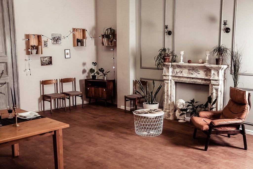 Дизайн интерьера под старину декоративный. Мало того, что основные предметы (стулья, шкафы, столы) выглядят как произведения искусства, так они еще и дополняются настоящими произведениями: картинами, постерами, зеркалами. Стиль живописи лучше выбирать абстрактный.