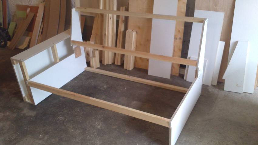 Теперь займитесь изготовлением рамы для матраса. Внимательно следите, чтобы она была гладкая и не повредила будущую обивку.