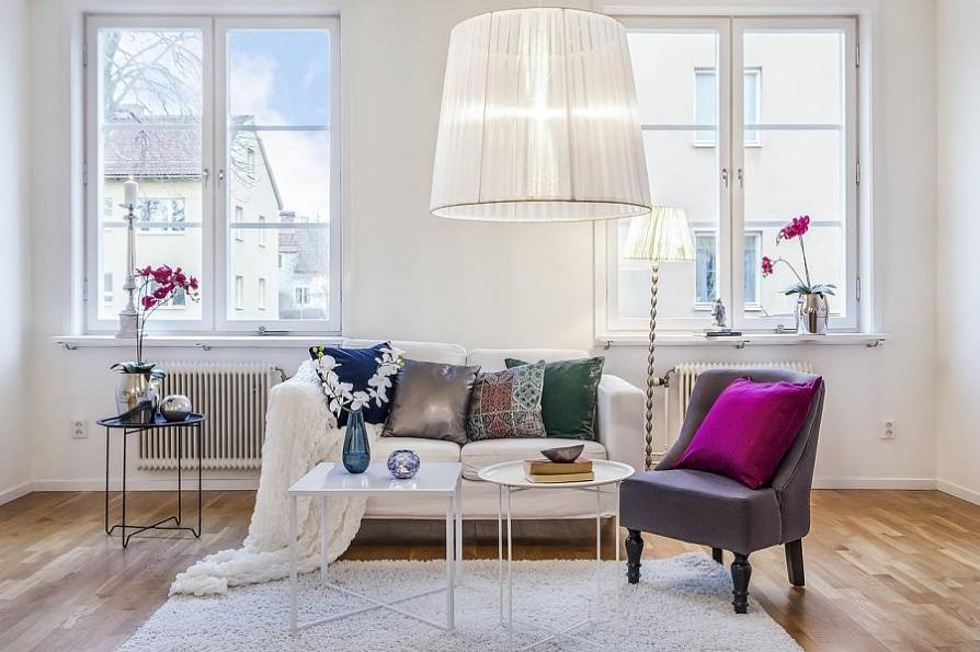 Минималистический северный интерьер никогда не покажется скучным и монотонным благодаря грамотно расставленным акцентам в виде аксессуаров и декора: