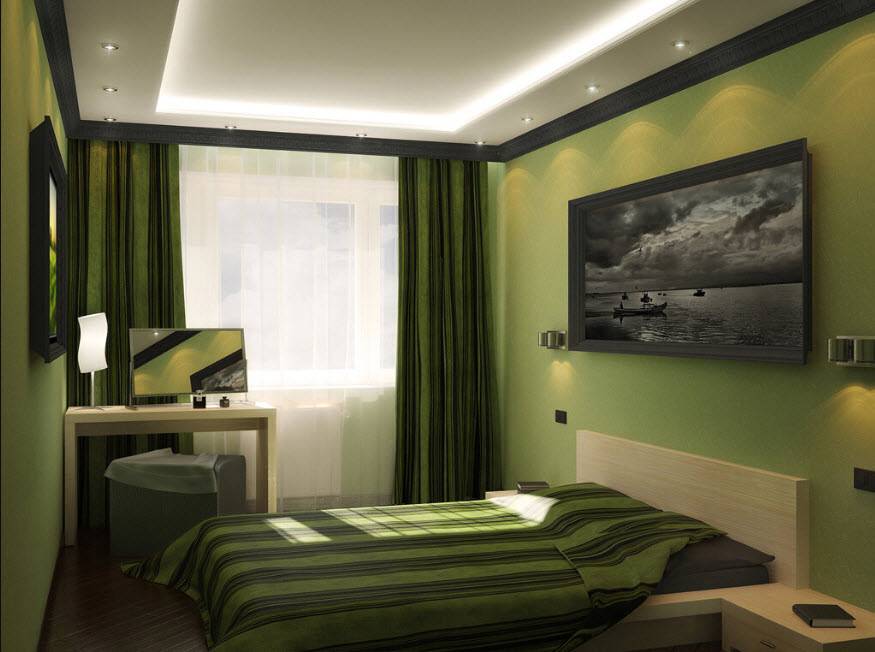 Однако это не является проблемой, так как в спальне проводят ночное время суток. Для некоторых людей такое решение даже выгодное, так как ничто не будет препятствовать спокойному сну.