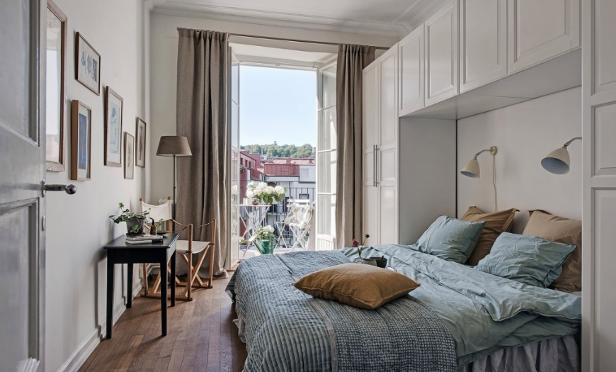 Особенности планировки спальни, совмещённой с гардеробной, лоджией или другими помещениями