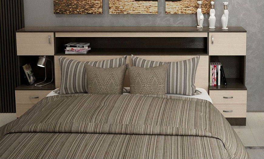Если позволяет выбранный стиль оформления спальни, от них можно отказаться, заменив на навесные полки. Есть варианты размещения необходимых мелочей во встроенном в изголовье кровати мини-комоде.