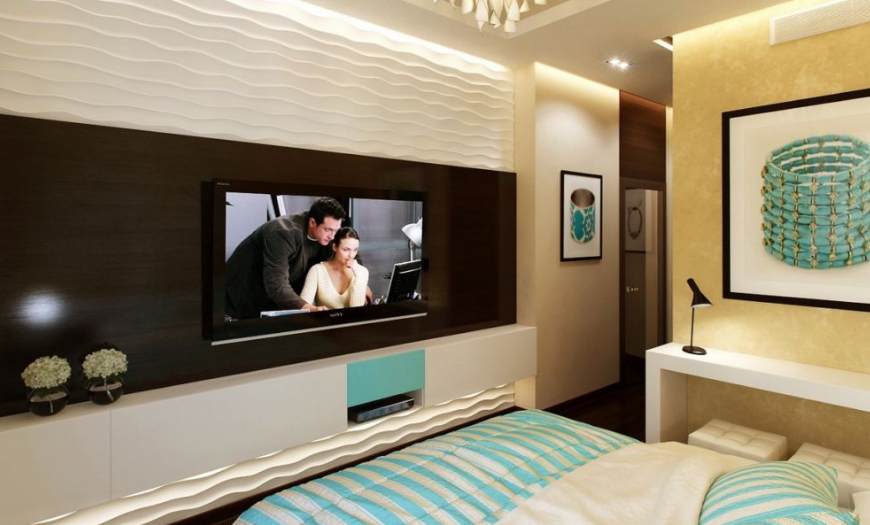 - Стены и потолок должны быть белыми.Светлые оттенки часто являются базой, но могут встречаться исключения. Эксперименты с цветовым оформлением спален проводят многие дизайнеры.