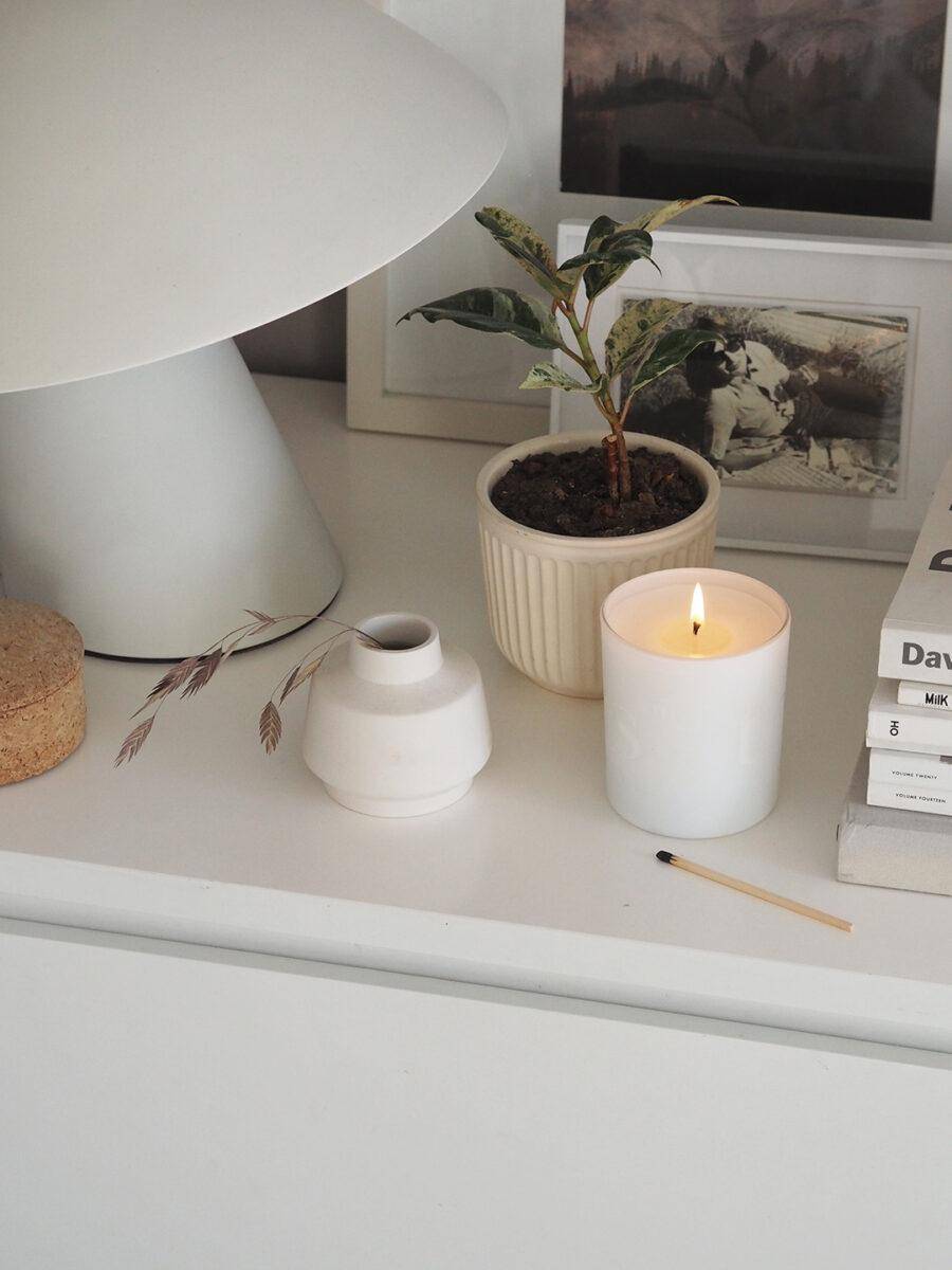 Живые цветы – это незаменимый элемент декора для спальни в белом цвете. А украшение комнаты свечами делает ее более романтичной.