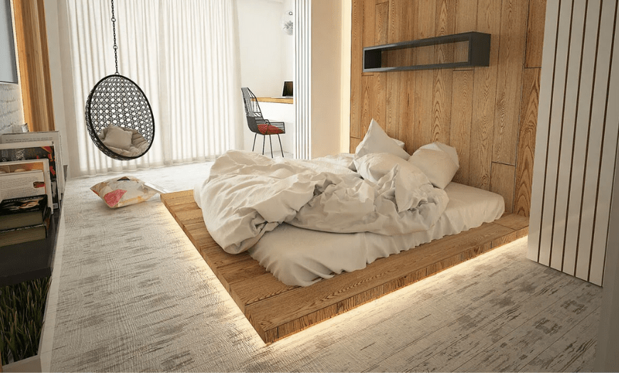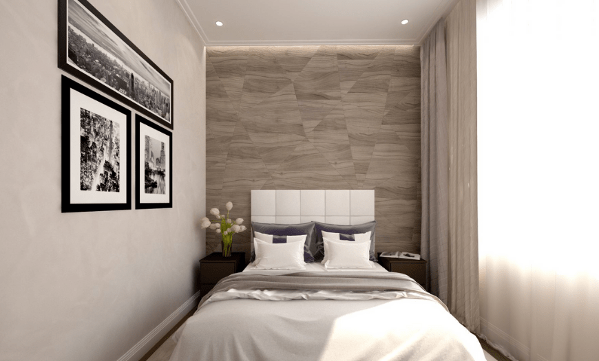Также важно правильно подобрать мебель. Центральным элементом здесь является кровать – она должна быть примерно на 20 см длиннее рост человека