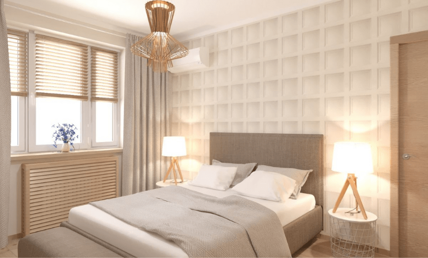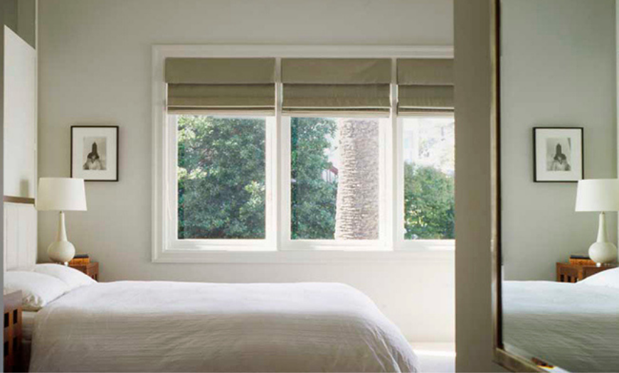 Ряд дизайнерских решений не приветствует использование текстиля в интерьере. Тогда шторы можно заменить на жалюзи. Жалюзи в спальне – хорошая альтернатива шторам.