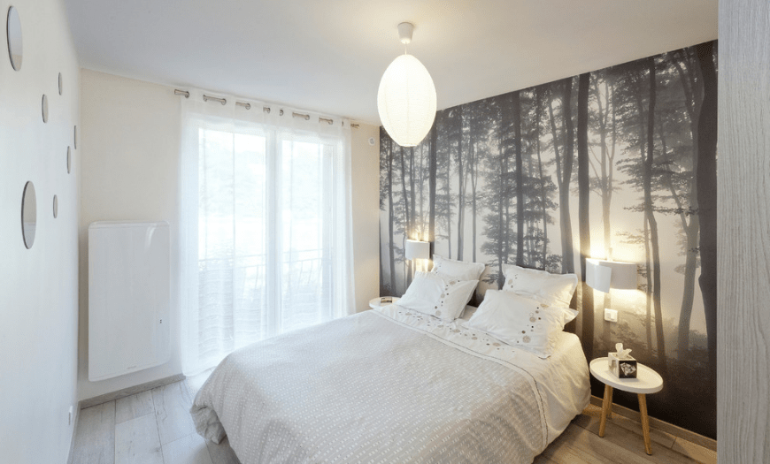 - Скандинавский стиль отдает должное белоснежным стенам, мебели и простыням, чтобы стало светлее и радостней в помещении.