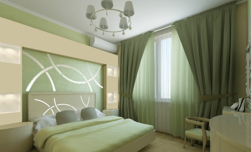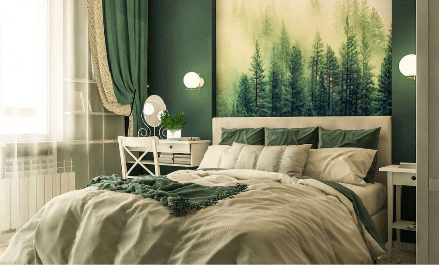 Зеленый цвет успокаивает, поэтому отлично подходит для спален