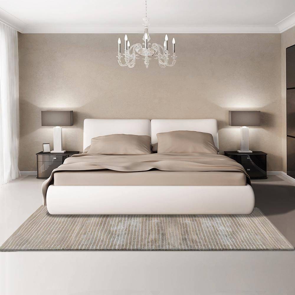 Пол современной спальни лучше всего создает экологичный, но дорогой паркет, более дешевый ламинат или массивная доска. Небольшой пушистый ковер или ковролин неярких тонов сделают покрытие более теплым и приятным для босых ног.