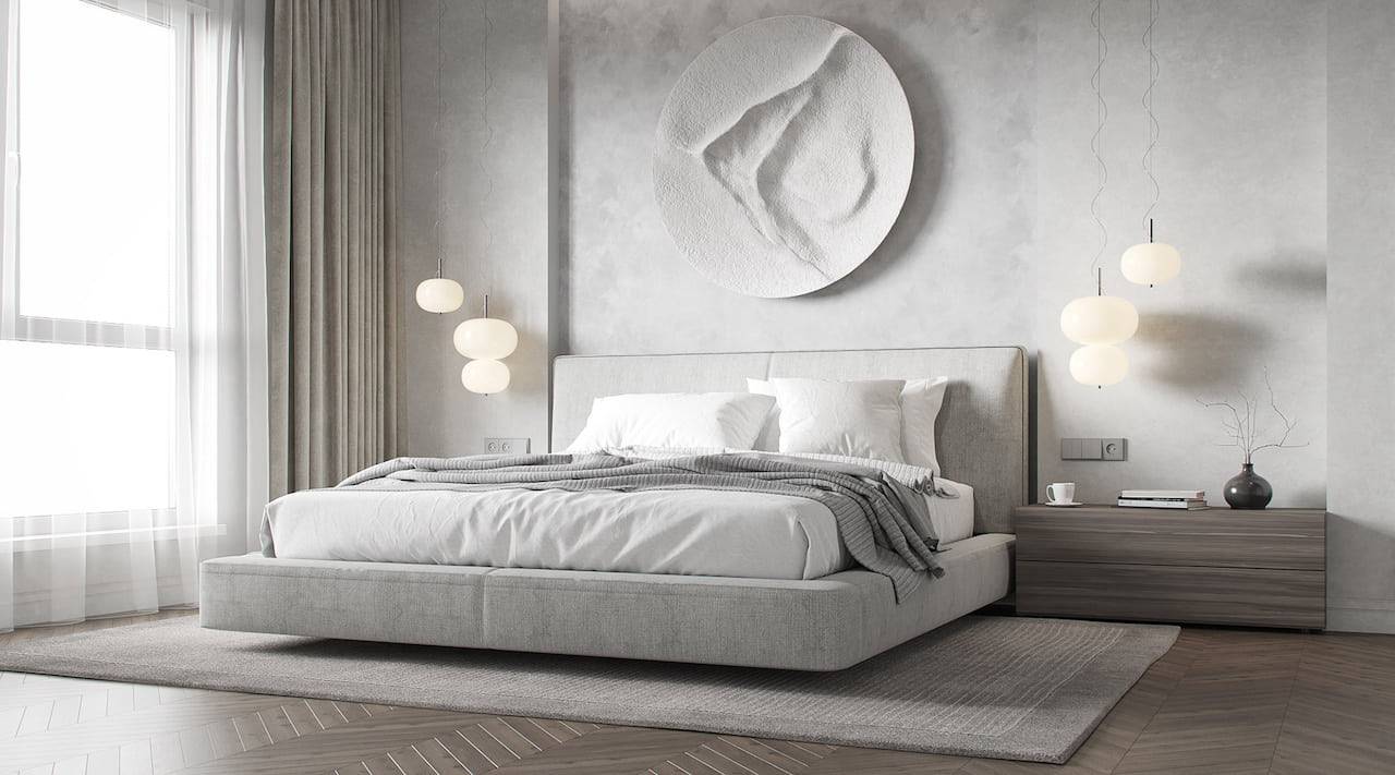 Серые оттенки в спальне