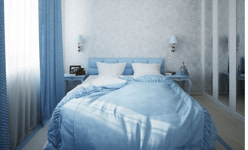 Синие тона очень хорошо подойдут для спальни