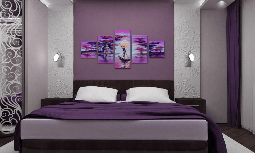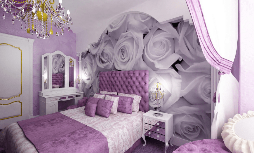 Фиолетовый/розовый оттенок в спальне