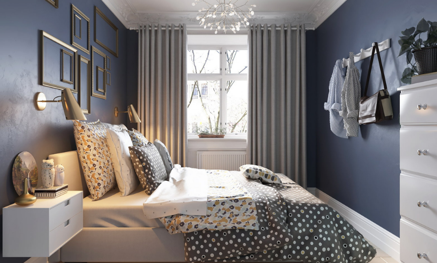 «Полезный совет. Если оформляемая спальня очень мала, используйте побольше светлых оттенков в дизайне ее интерьера, они наполнят комнату воздухом и необходимым пространством»