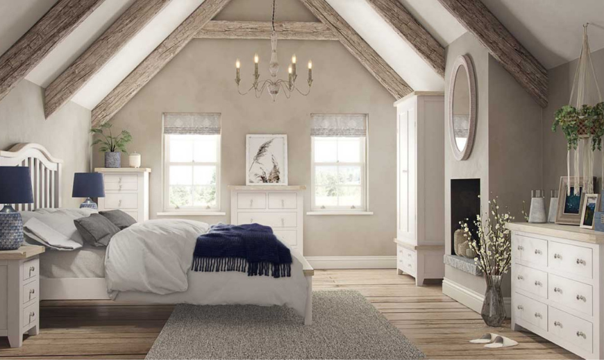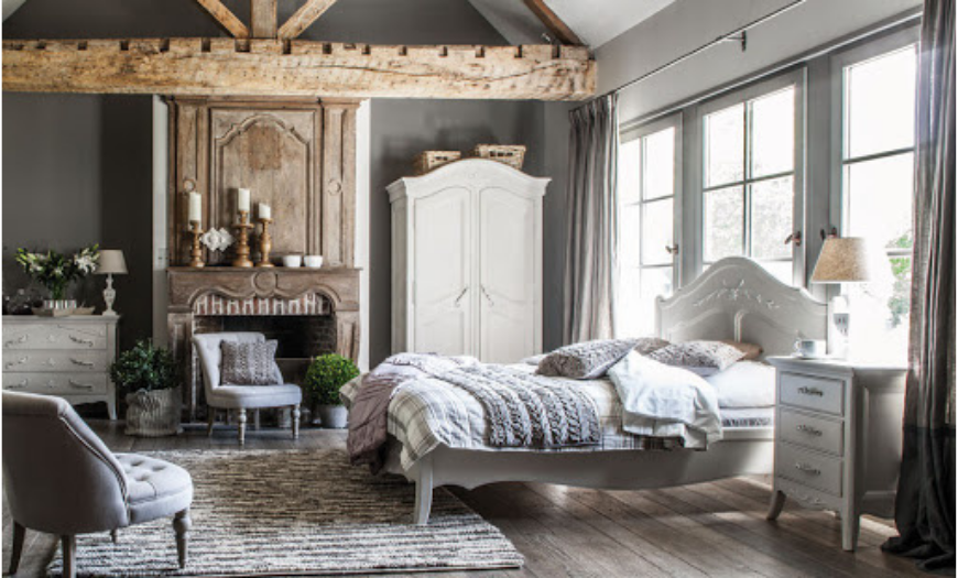 В большом помещении можно оформить интересный, самобытный интерьер в стиле рустик. В нем превалируют темные тона, используются дополнительные элементы в виде потолочных балок и др. Для маленькой спальни лучше выбрать прованс. Светлые оттенки, присущие этому стилю, позволят визуально корректировать помещение.