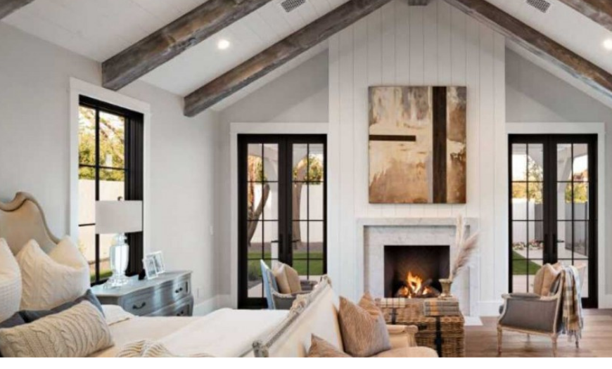 Даже скромную по площади спальню можно оснастить камином. Нередко под спальню в загородном доме отводят помещение на верхних этажах или размещают на мансарде, но даже в таких случаях в маленькой комнате можно организовать каменный очаг.