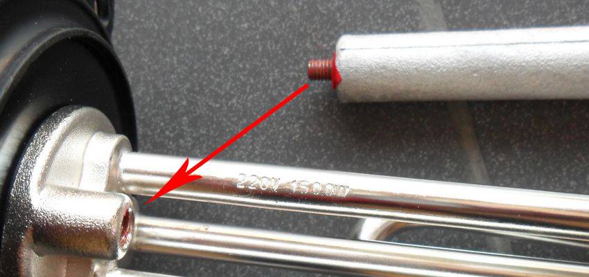 Стальной корпус и электрический нагревательный элемент создают гальваническую пару, при этом корпус становится анодом. Для того, чтобы он не разрушался под воздействием воды, изготовители разместили около ТЭНа сплав, в состав которого входит алюминий.