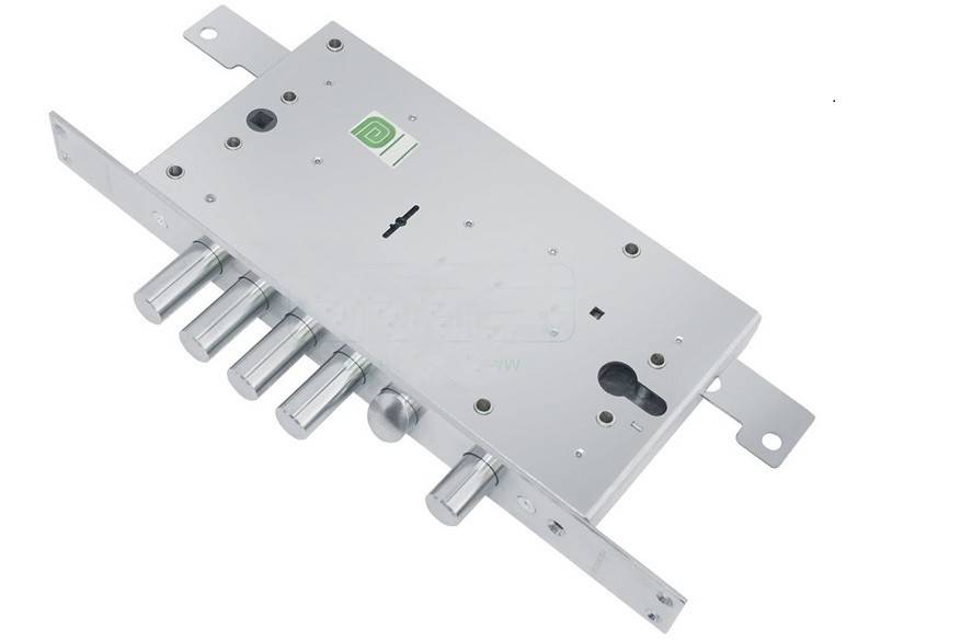 Представляет собой дверной предохранитель врезного и скрытого типа размещения. В обычном состоянии задвижки управляются посредством дверной ручки. Блокирование ригеля осуществляется при помощи электромагнитного мотора.