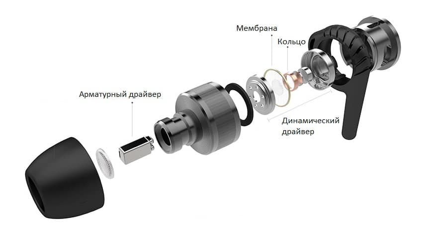Арматурный излучатель в создании звука использует подвижный П-образный якорь. За счет низкого хода мембраны звук получается с чистыми верхними частотами, но слабыми низами. Встречаются гибридные модели, объединяющие преимущества и недостатки обеих технологий. По факту, не всем компаниям удается добиться баланса в звучании, «заваливая» верхние или нижние частоты.