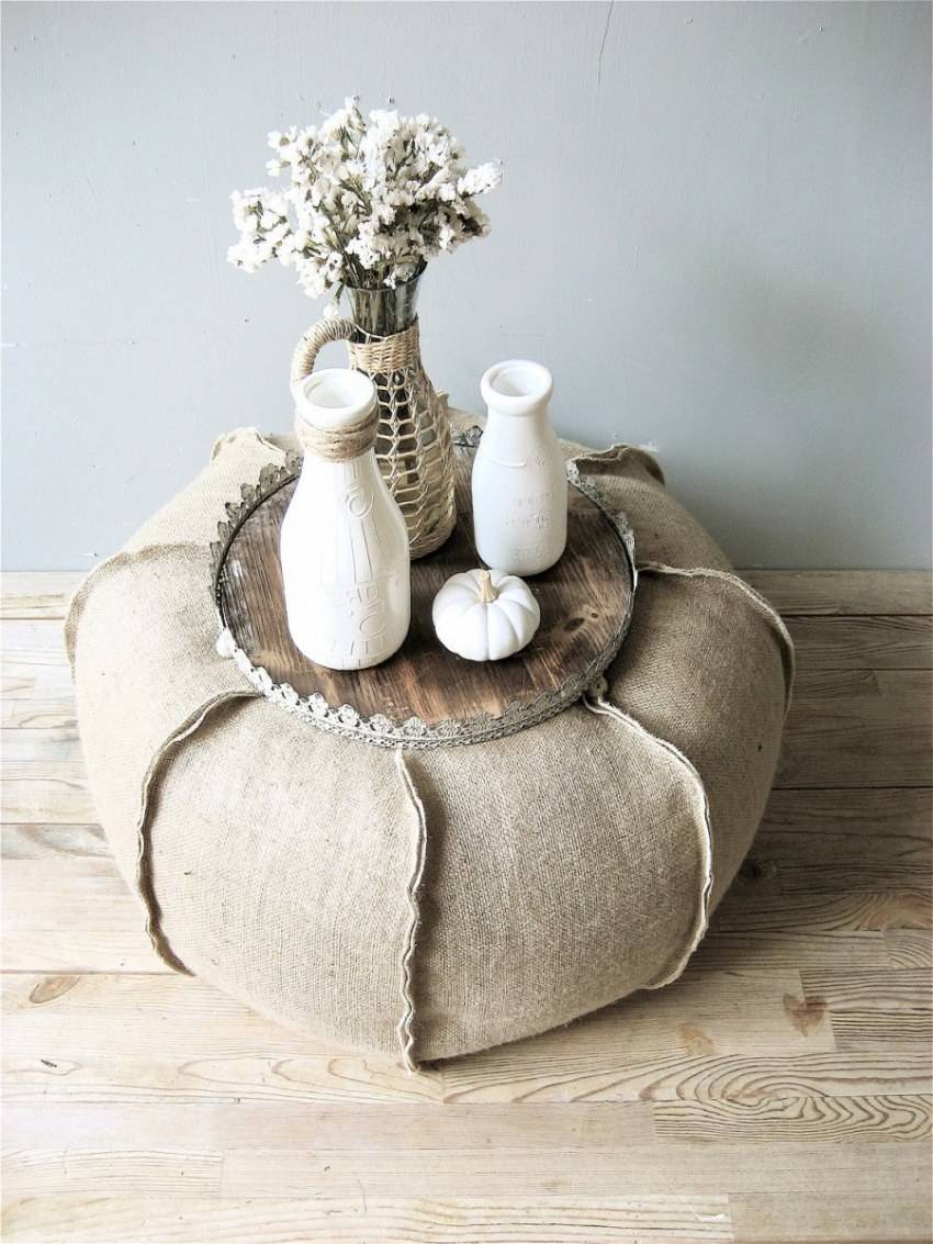 Такой шедевр можно использовать не только в качестве пуфика , но и в качестве столика.