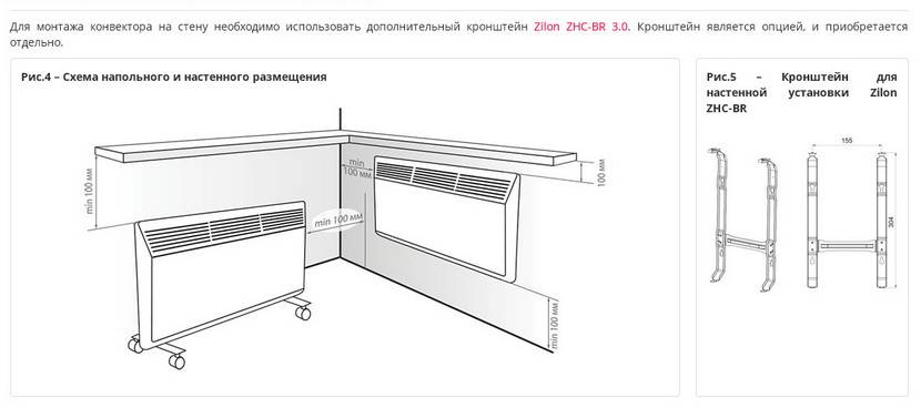 При монтаже конвекторного обогревателя следует четко соблюдать инструкцию от производителя, где должны быть прописаны следующие ограничения: