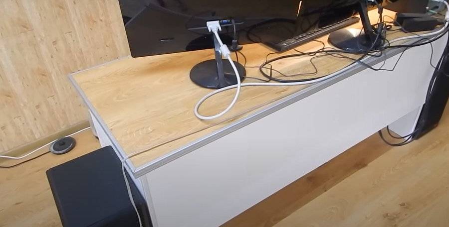 Размышляя что можно сделать из кусков ламината, куда девать его обрезки, стоит обратить внимание на рабочие поверхности в кухне, на обеденную зону или кабинет. Столы здесь часто используются десятилетиями, со временем теряют былую презентабельность