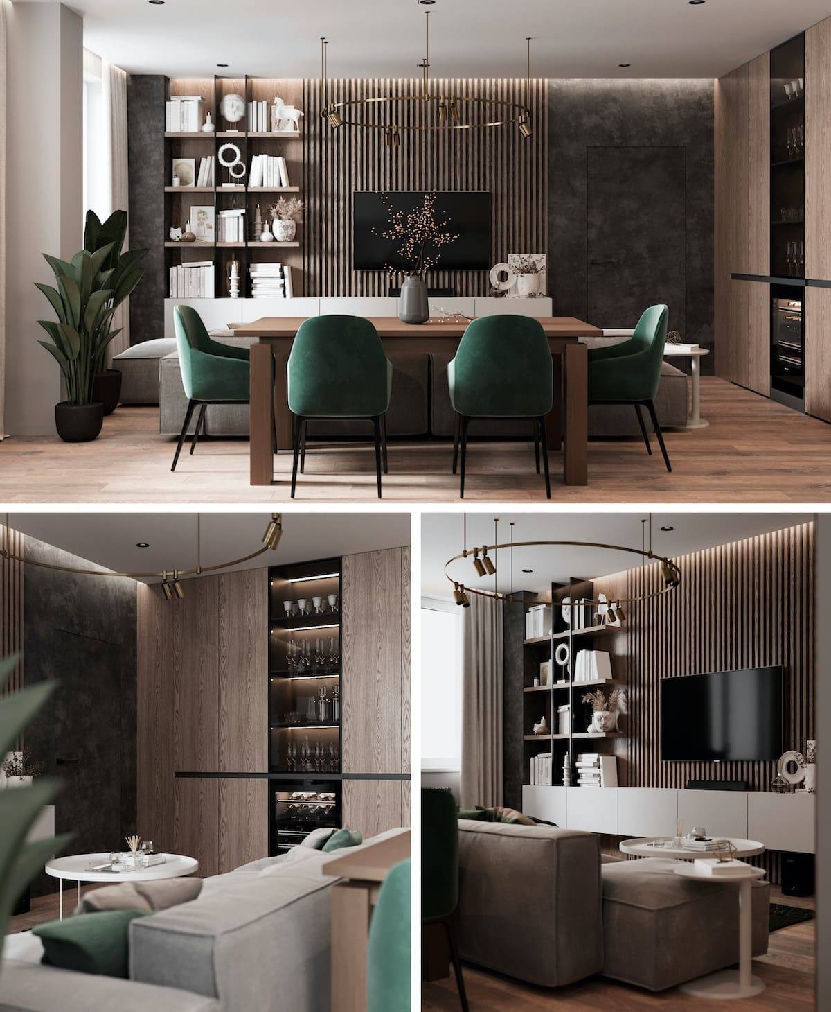Например, вы обнаружите, что одна из популярных тенденций домашнего дизайна 2021 года-это черные стены. Это может показаться немного пугающим, но черная стена создает мощный и элегантный акцент. Одно из самых распространенных заблуждений об использовании черного цвета для идей дизайна интерьера заключается в том, что он может сделать комнату меньше. Тем не менее, наши эксперты предложили сочетать черный со светлыми оттенками, поскольку контраст может помочь еще больше увеличить общий размер и внешний вид помещения.