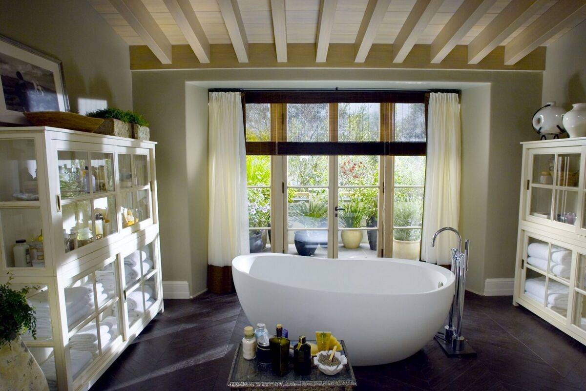 Надо сказать, что кинодекораторы Синди Карр, Дэвид Смитт и Аль Хобс немало потрудились, чтобы поселить своих героинь в такие интересные и красивые жилища. В фильме «Отпуск по обмену» они поселил Аманду Вудс (Камерон Диаз) в потрясающий современный особняк в средиземноморском стиле, находящийся в Калифорнии.