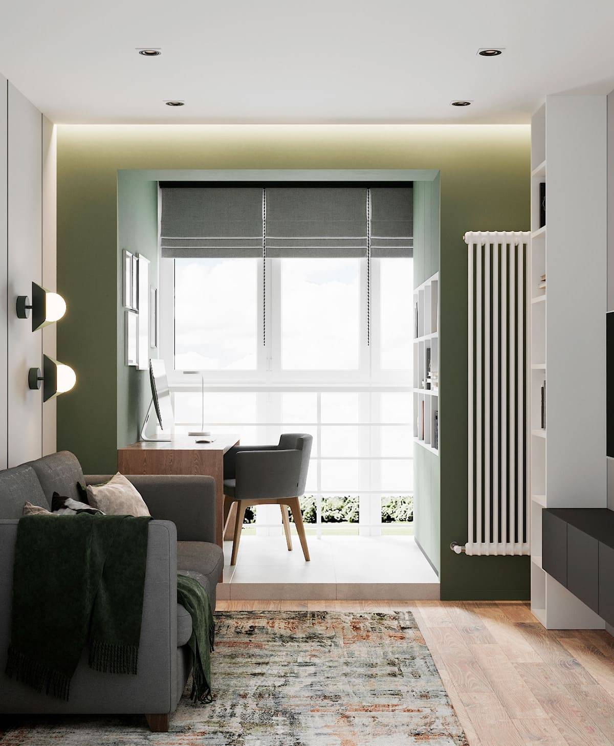 Дополнять ведущий цвет стоит одним или двумя разбивочными. Избегайте отвлекающей пестроты, дизайн должен соответствовать рабочей атмосфере. Потолок лучшее оставить светлым – так пространство не будет казаться сжатым.