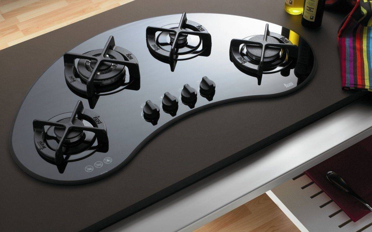 стеклянные пластины — они изготовлены из закаленного стекла, что делает их максимально похожими на электрические пластины, а конфорки, встроенные в элегантную стеклянную панель, выглядят красиво. Стандартно черное стекло, но по желанию заказчика оно может быть белым, серебристым или графитовым. Покупая такую плиту, необходимо обращать внимание на периферийный каркас, который защищает конструкцию от механических повреждений. Хотя гладкая и однородная поверхность кажется легкой в уходе, необходимо помнить, что на темном блестящем фоне найти полосы и пятна не составит труда. Кроме того, после выкипания жидкости могут пролиться на столешницу или мебель, иногда они также попадают под кран