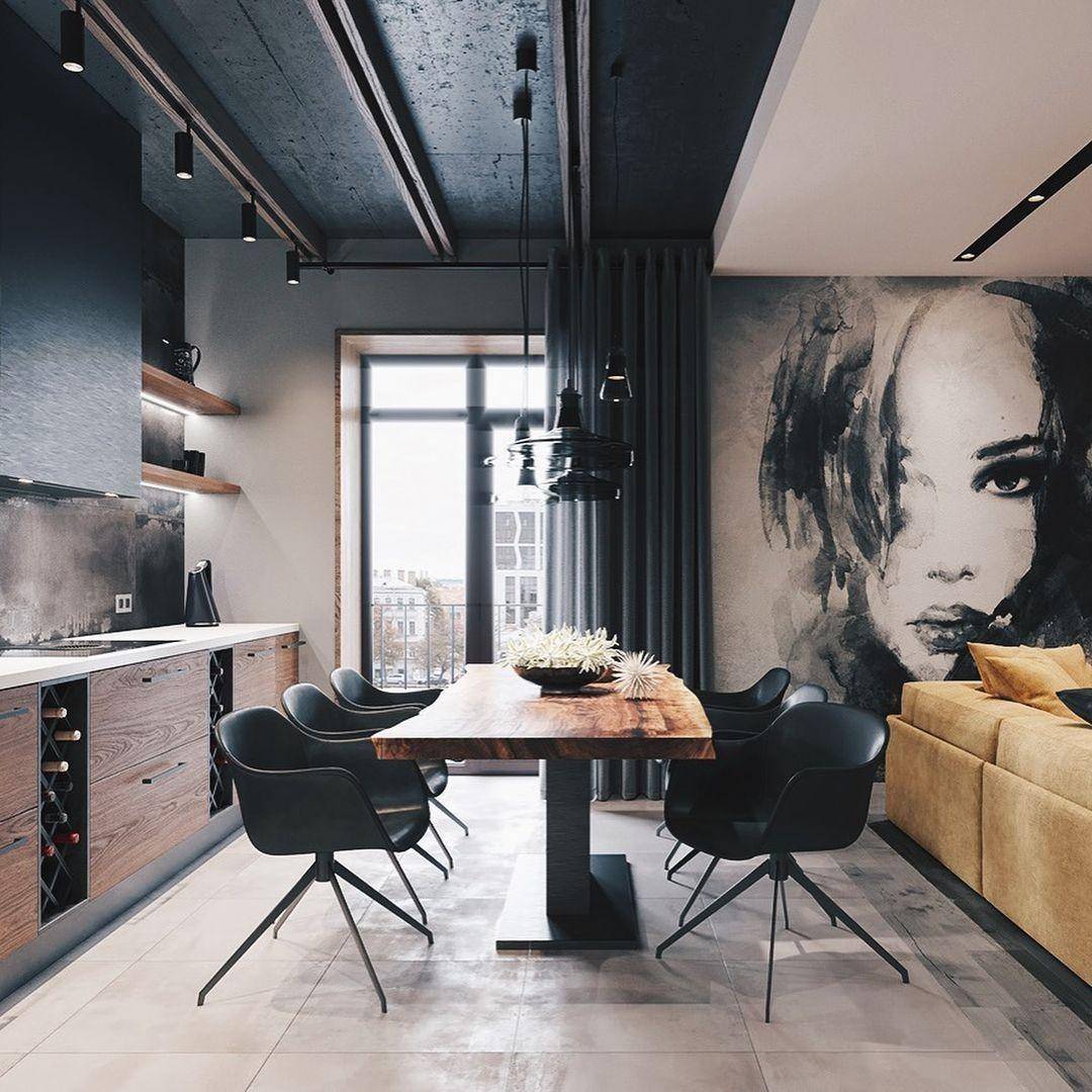 Отличный способ отвлечь внимание от кухни – разместить в пространстве большой яркий акцент. Это «что-то» должно быть действительно ярким и большим, выбиваться из общего интерьера и привлекать внимание