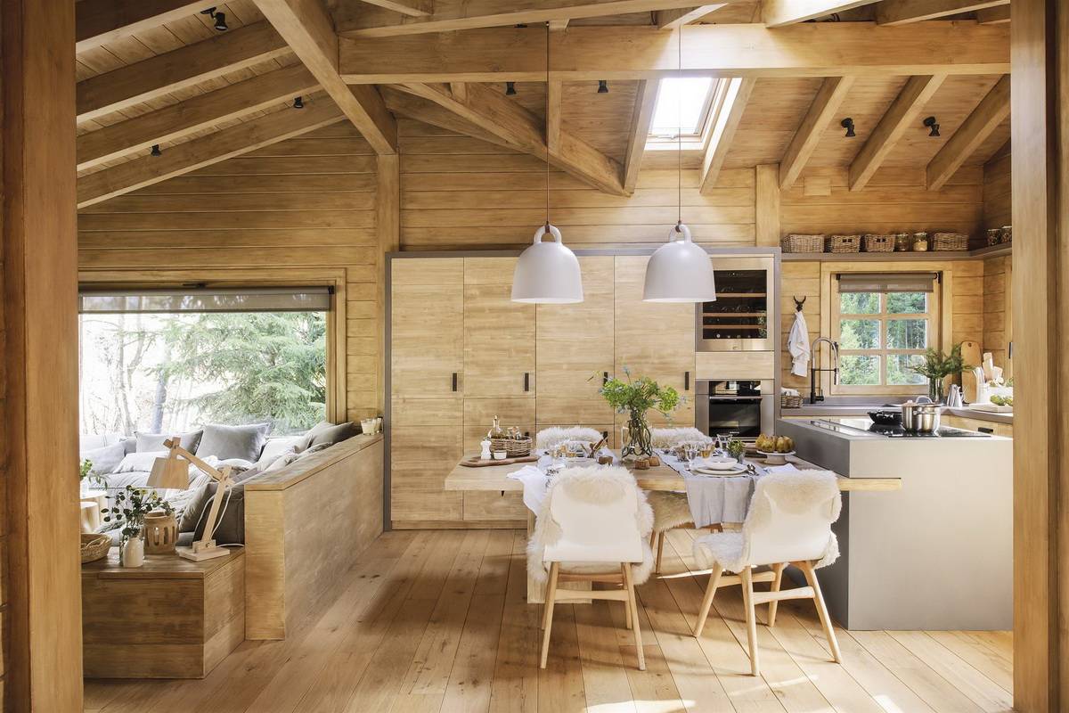 Простое и эффективное решение – сделать фасады кухонных шкафов и остальной корпусной мебели одинаковыми. Это объединит пространство.