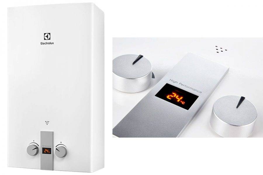 Улучшенная модель бюджетной колонки проточного типа от Electrolux. Данный водонагреватель имеет производительность 10 литров в минуту. Колонка оснащена многоуровневым европейским комплексом защиты: от включения без воды, от перегрева, от работы при отсутствии тяги. Во избежание аварии, функция контроля наличия пламени и датчик тяги дымохода отключают подачу газа. Теплообменник изготовлен из экологичного материала: бескислородная медь, без содержания свинца. Данные от встроенного термометра отражаются на дисплее. Розжиг колонки производится с помощью электророзжига, который работает от батареи с индикатором заряда. Водонагреватель подключается просто, имеет удобный диаметр для дымоотвода (110 мм).