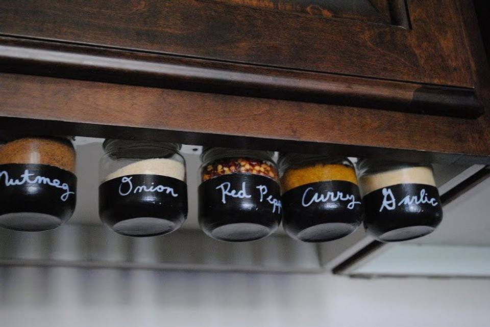 Вариант не очень быстрый, зато практичный — в зависимости от вида приправы вы сможете менять подписи, так как на грифельной краске буквы легко стирать и снова писать мелом.