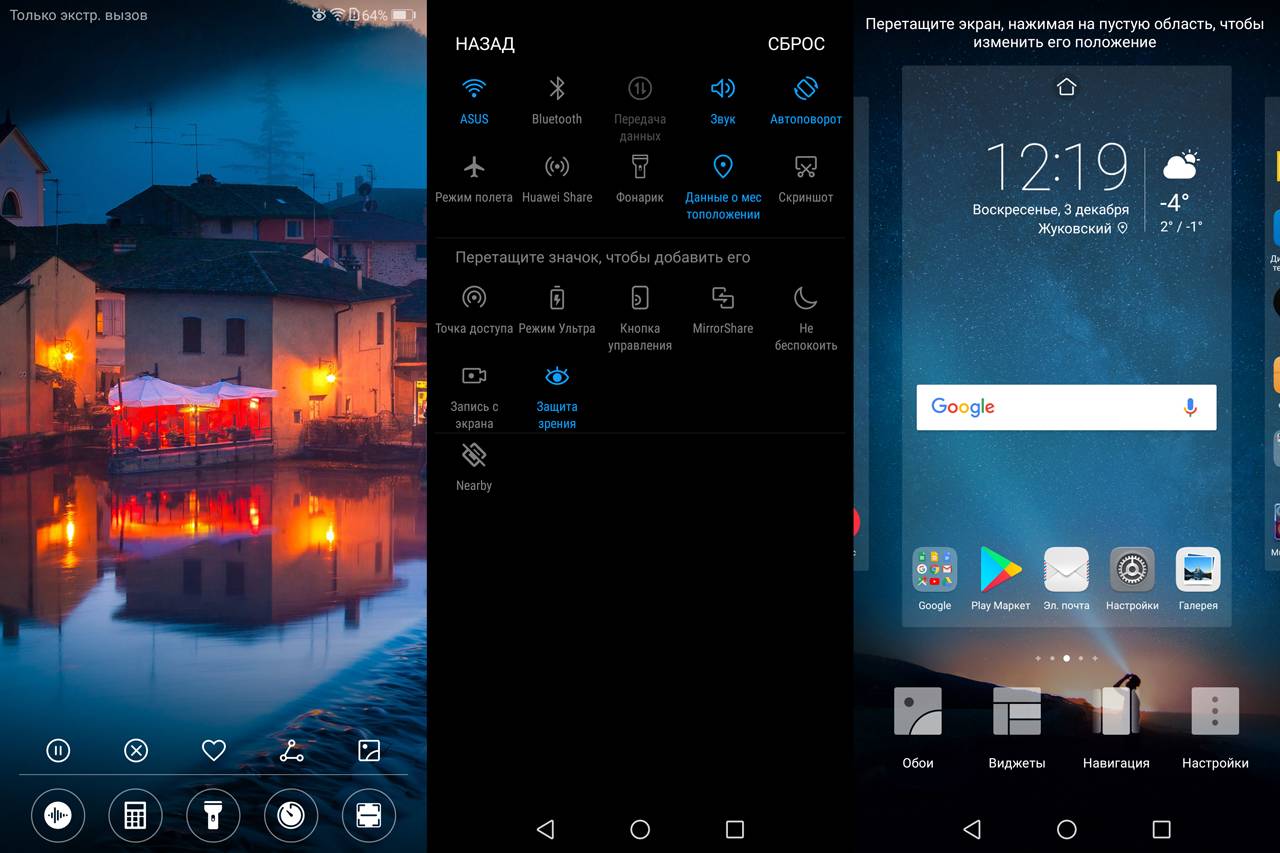 Оболочка EMUI 5.1 смартфона снабжена интересными фишками. Она позволяет изменить сетку ярлыков на рабочем столе или анимацию, настроить автоматический поворот экрана. При этом в альбомной ориентации значки располагаются органично, что делает удобным использование в автомобильном держателе.