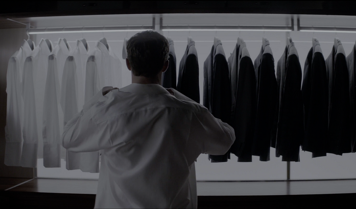 Пожалуй, добиться такого идеально порядка можно только с помощью домработницы, которая служит в доме у Кристиана Грея. Размер гардеробной повторить в обычной квартире тоже будет сложно. Поэтому советуем взять на вооружение отдельные детали: вещи, которые вы носите часто, можно развесить на рейлинги по цветам. Остальное спрятать на закрытых полках, чтобы на одежду не попадала пыль . Также, если есть место, можно разложить мелочи по органайзерам: так вы всегда найдете нужную вещь.