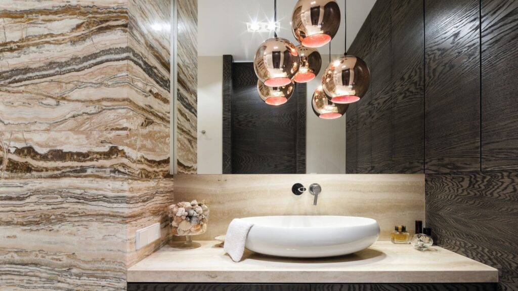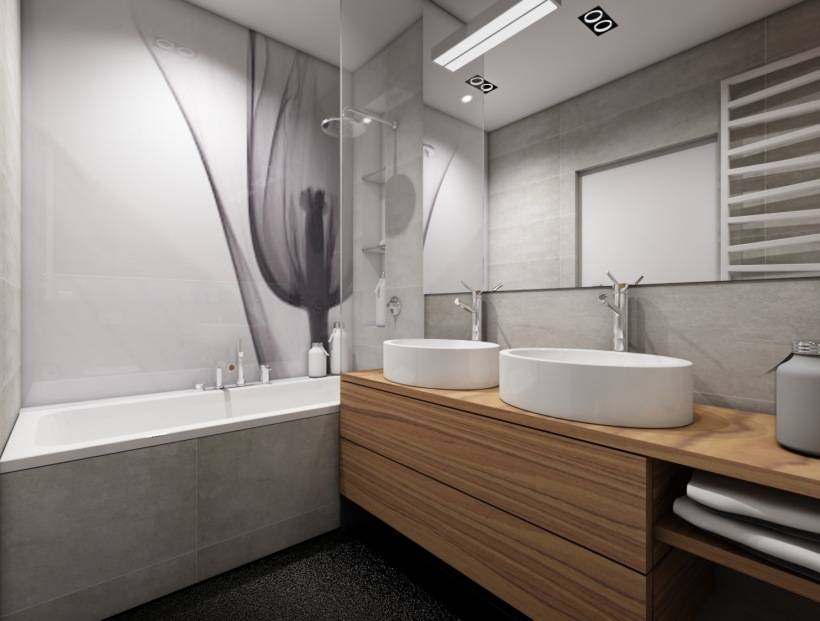 - Правильно подобранное освещение – это уютный тёплый свет и возможность проводить гигиенические процедуры при хорошем освещении. Используйте несколько источников света, более яркие и приглушённые.