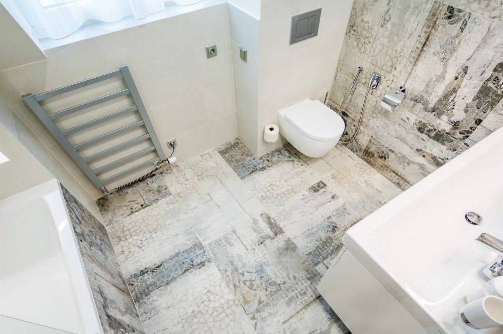 - Гидроизоляция пола и стен – это поможет избежать протечки воды и не стать виновником потопа у соседей. Гидроизоляционный материал укладывается под защитную стяжку, после этого кладётся плитка.