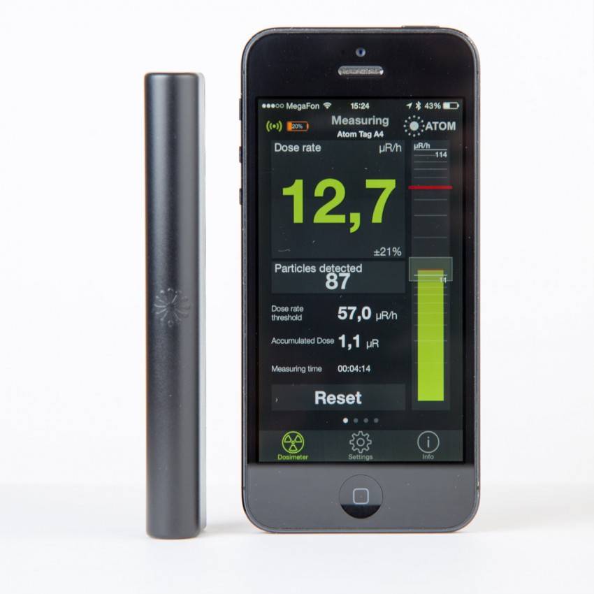 Существуют и более технологичные модели, например сцинтилляционный карманный дозиметр Atom Fast. Это компактный карманный дозиметр без дисплея, но с широким функционалом. Синхронизация с гаджетом позволяет задавать пороговые значения, составлять графики, наносить данные на карту.