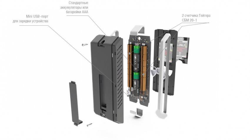 Большие размеры позволяют установить до четырех детекторов в один корпус, что увеличивает точность и площадь сканирования, снижает время измерения радиоактивного фона. Для снятия данных с портативного устройства не требуется специализированного оборудования, за исключением ПК, планшета или смартфона.