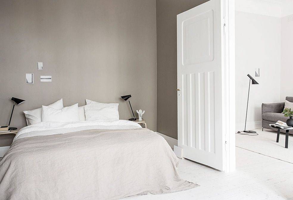 - Любой из пастельных оттенков можно разбавлять теплыми оттенками бежевого цвета. Серые тона используют, если цветовую температуру комнаты нужно понизить. А вот включения коричневого цвета придают спальне элемент старины.